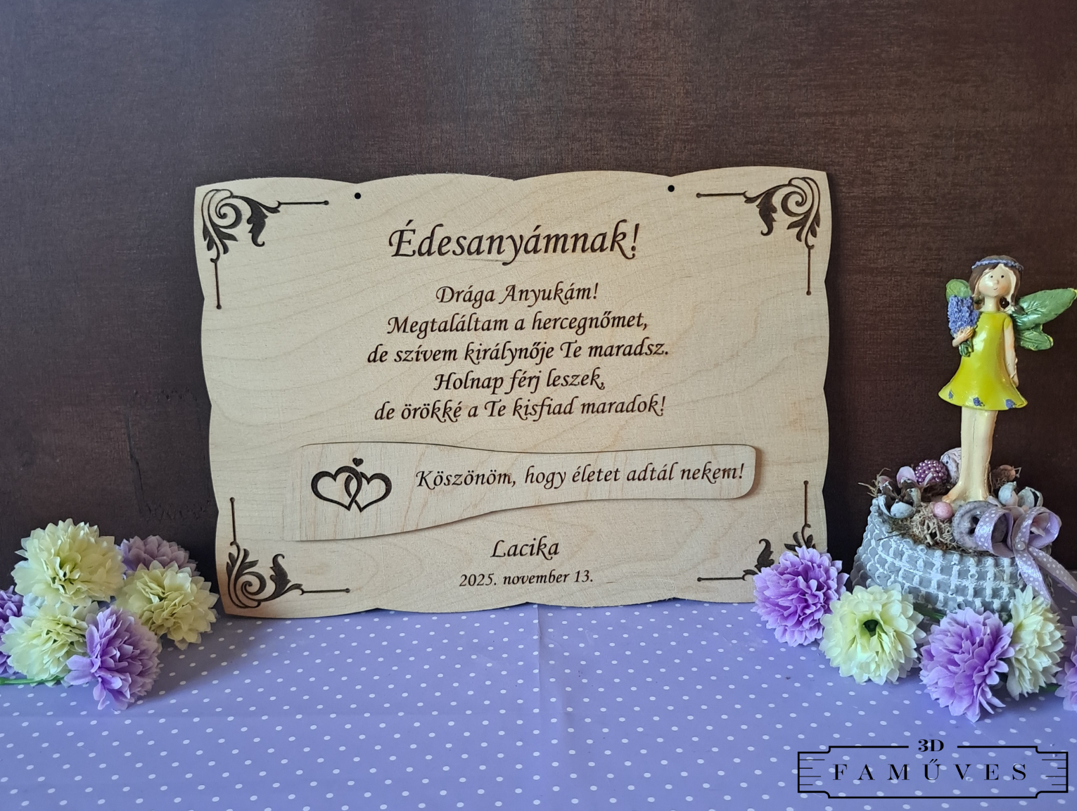 Egyedi köszönőajándék Édesanyáknak: fakanállal, gravírozott idézettel, amely örök emlék marad az esküvő után is.
